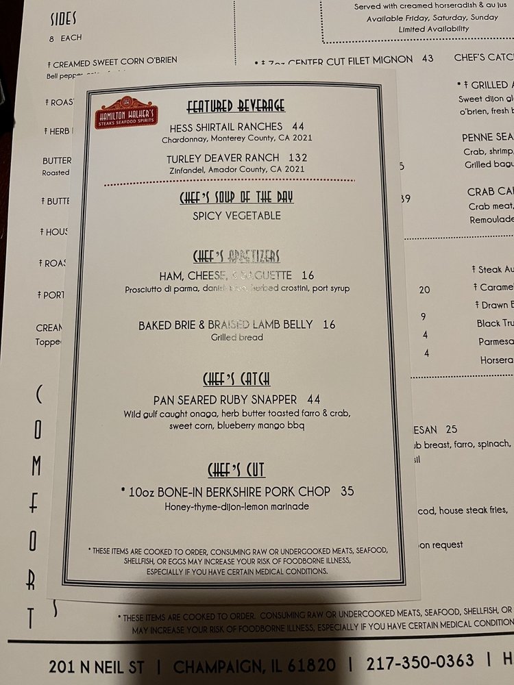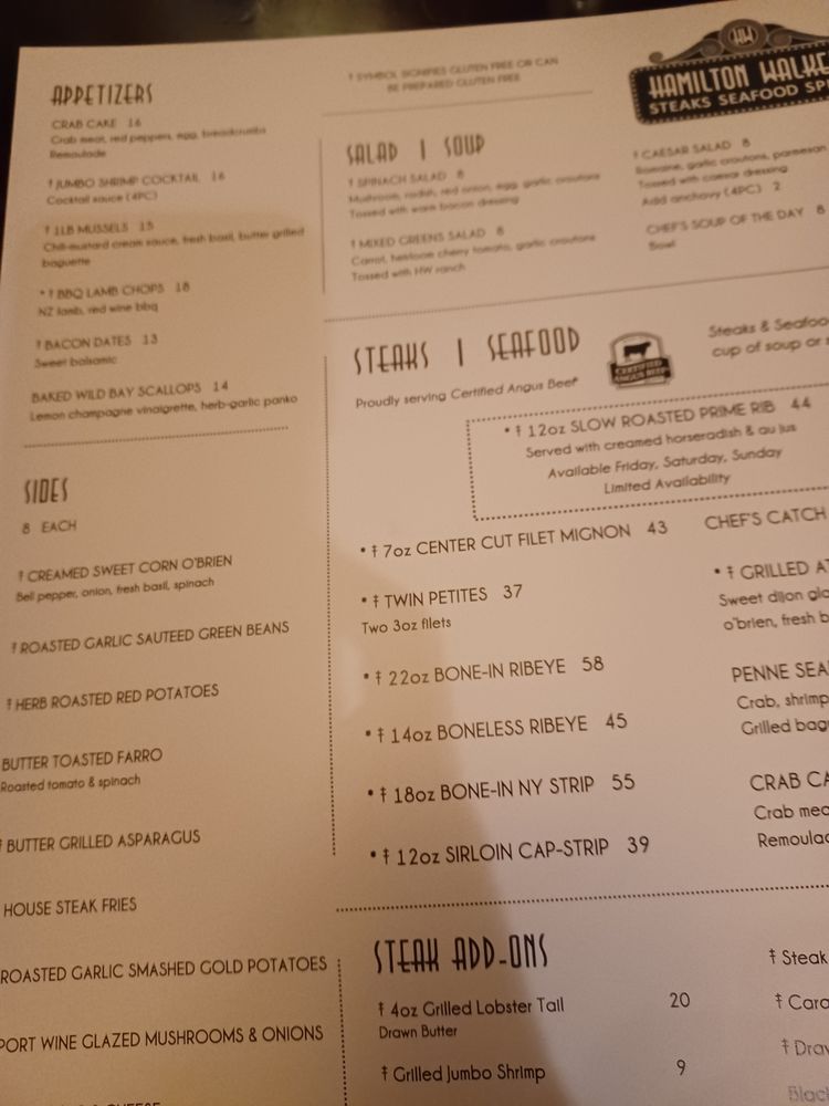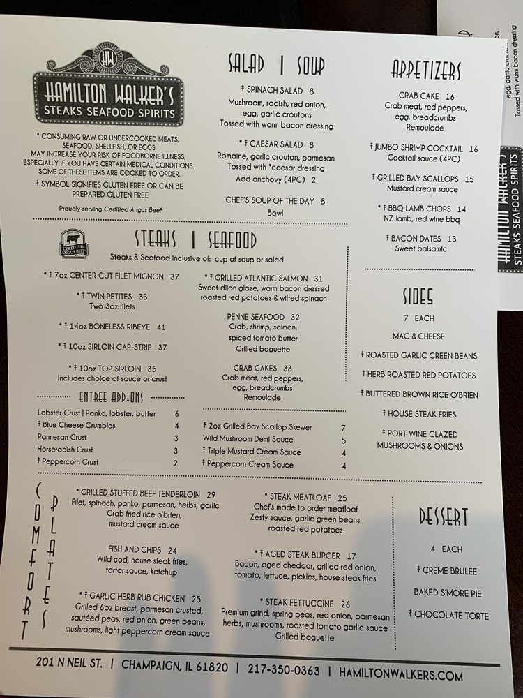 Hamilton Walker's is a sophisticated steakhouse, bar, and seafood restaurant located in Champaign, IL. Offering a range of amenities such as reservations, delivery, and takeout, this upscale eatery caters to all needs with vegan options available. The establishment is wheelchair accessible, with ADA-compliant facilities, QR code menus, and closed captioning on TVs. With a full bar, outdoor seating, and no steps or stairs hindering accessibility, Hamilton Walker's is a perfect spot for a classy evening out. The menu features delectable options like Shrimp Cocktail, Crab Cakes, Bacon Dates, and Lamb Chops, ensuring a dining experience that tantalizes the taste buds. With a variety of family meal options available for takeout, this restaurant is the go-to destination for a fine dining experience in Champaign.